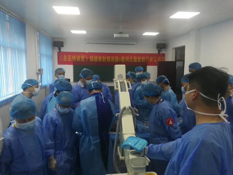 近年来疼痛科在各地各医院逐渐得到重视和发展,针对急慢性疼痛的诊疗技术层出不穷,各个流派百家齐放又百家争鸣。射频、臭氧、等离子、胶原酶、椎体形成、椎间孔镜等技术已成为大家公认的疼痛科核心技术。为了解决该学科发展时间短,缺乏统一的诊断标准、诊断思路、操作流程和技术培训体系,由河南省骨科医院、许昌颈肩腰腿痛专科医院、许昌学院三家联合举办的“颈腰椎射频消融技术+脊柱内镜技术新鲜尸体实操培训班”,于5月19日在我院正式开班。来自全国多家医院疼痛科、骨科、脊柱外科、介入科等相关学科的26名学员和我院解剖与康复专业6名教师参加了培训。