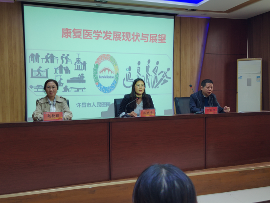 10月11日下午,我院在二楼会议室举行2023级康复治疗技术专业认知教育活动。活动由陈丽平副院长主持,参加活动的有许昌市人民医院何松照主任、护理学系主任赵艳丽和康复教研室主任李蕾芳和部分老师代表,以及2023级全体康复治疗技术专业学生。陈丽平副院长首先表达了对2023级新生热烈的欢迎,向同学们介绍何松照主任在康复医学方面的成就。