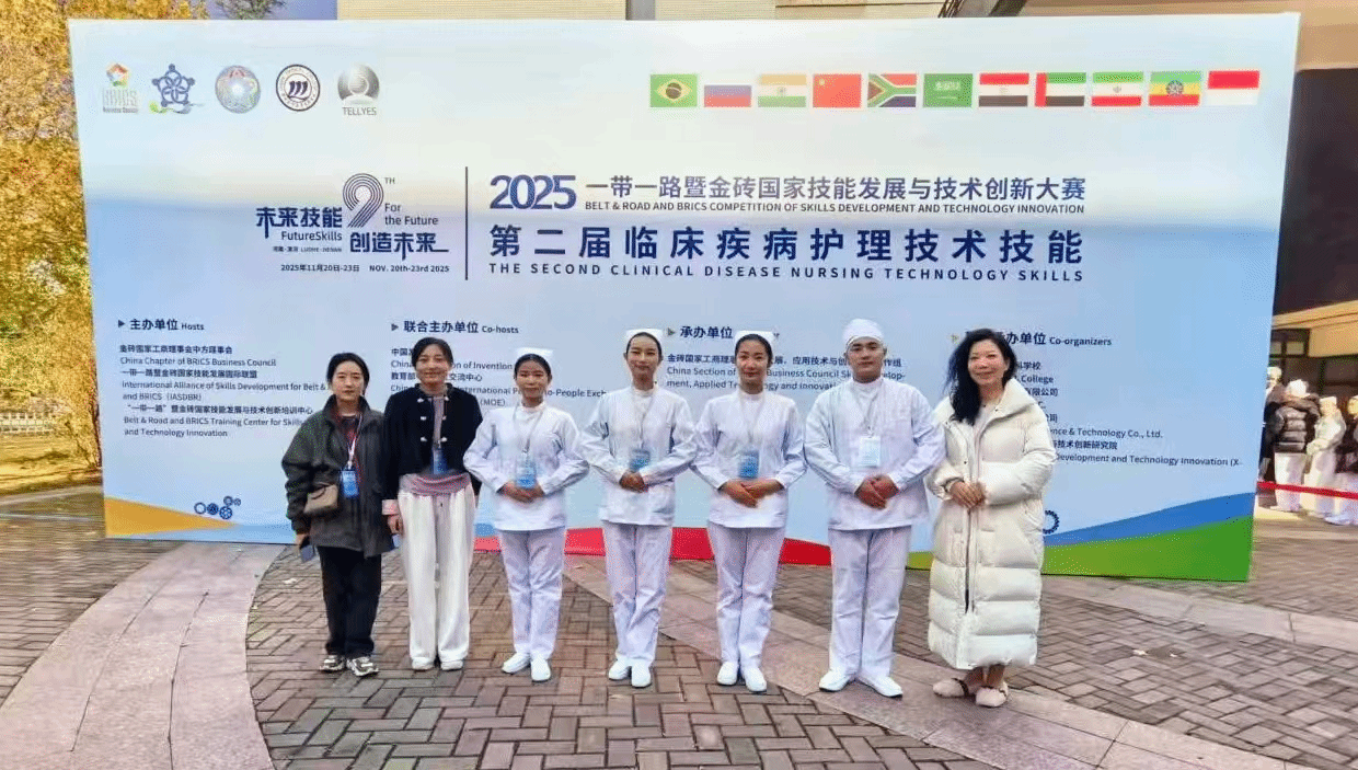 11月20——23日,“2025‘一带一路’暨金砖国家技能发展与技术创新大赛”第二届临床疾病护理技能赛项决赛在漯河医学高等专科学校举行,我院护理专业2023级赵占辉、刘多多、韩泞如、刘胜男四名同学组成的“智暖夕阳”团队获得高职组三等奖。