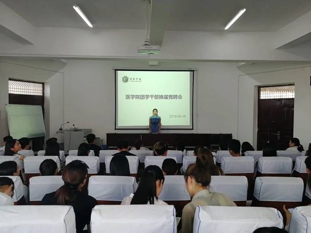 6月14日下午,我院在301办公室举行团学干部竞选活动,本次竞选活动的评委有医学院分团委书记吕欣、全体辅导员及往届优秀团学干部。