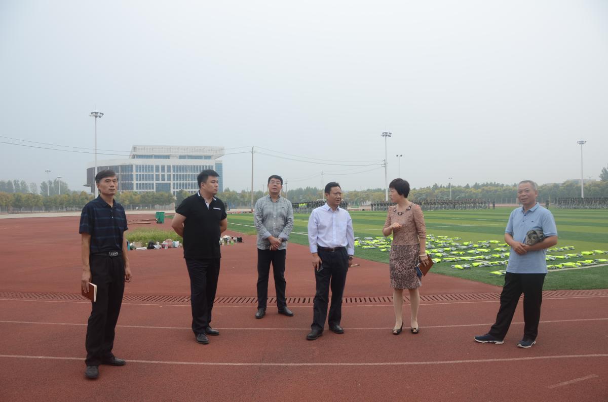 9月17日下午,党委副书记孙海在承训负责人和党委宣传部、学生工作部(人武部)、团委、保卫部等相关部门负责人的陪同下来到兴华校区新生军训现场,视察我院2018级新生军训情况。