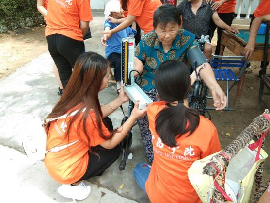 由辅导员张亚莉、田思源带领的“情暖莲城”医疗援助服务队以志愿为前提,发挥自身的医学知识,为病人及社区单位和居民的医疗服务做贡献。