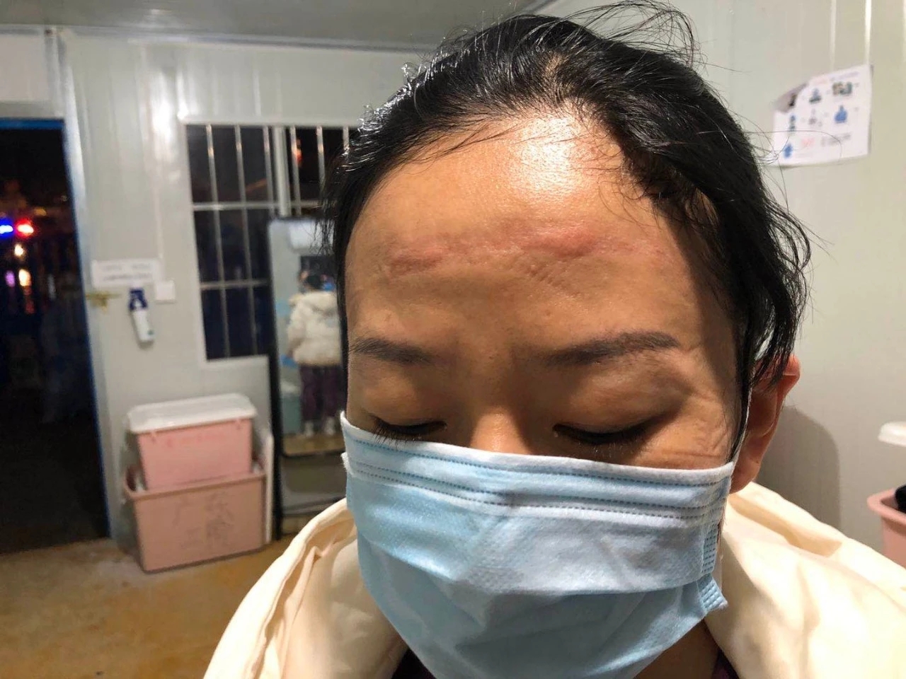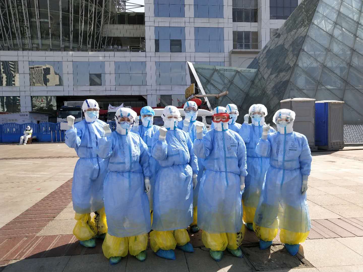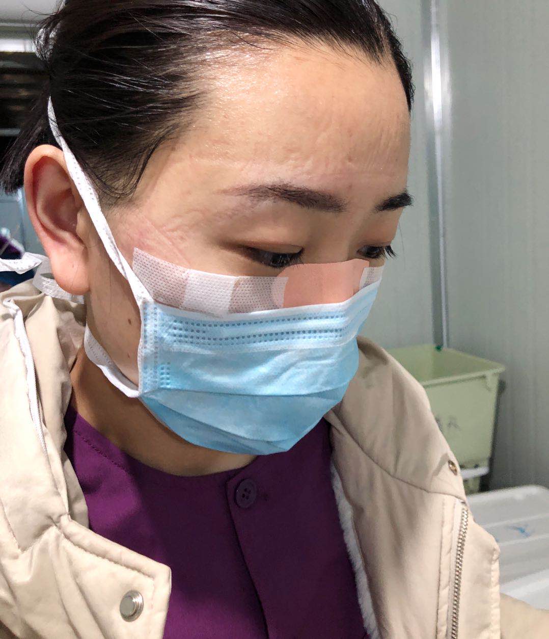 经过简短的培训及防护技能的训练,这群最美逆行者们便进入到武汉汉江方舱医院,投入紧张的工作。他们分到综合协调组,一天分成4个班,每班6个小时,因需要提前穿好防护服,加上路程上的时间,差不多一个班下来要8个小时,穿好防护服进舱后的6小时里,她们不能进食,不能喝水,不能上厕所,所以进舱前都穿好了尿不湿。虽然,进舱前尽量做好了防护,但出舱后脸上额头上的压痕还是久久不能平复。