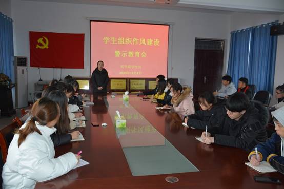 为进一步推进我院学生会组织改革,强化学生会工作人员的作风建设,12月2日,我院在办公楼311会议室召开学生组织作风建设警示教育会。学生会全体工作人员参与会议,团委副书记姚婷玉主持会议。
