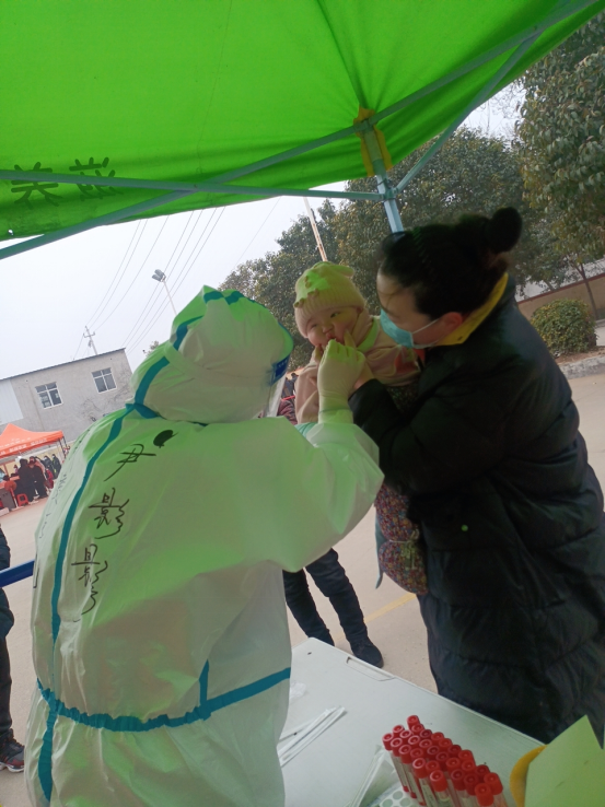 李媛媛是许昌学院08级护理专业的学生,毕业后在长葛市人民医院输血科。得知疫情的她,1月3日便抵达禹州朱阁镇开始核酸检测工作,她负责的还有禹州朱阁镇敬老院核酸检测工作,镜头里的她一次次走进老人的房间,蹲下来给老人做核酸检测。当电话采访时,李媛媛说,“2020年初,我看到我们学校毕业生王媛媛同学支援武汉,我很受鼓舞”。是的,“媛媛”们都很棒。