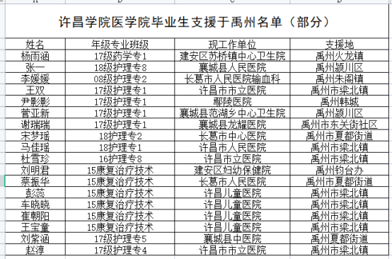医学院17级药学专1班杨雨涵,现在在许昌市建安区苏桥镇中心卫生院工作,得知禹州疫情后,她第一时间报名支援,1月2日便到达禹州,至今仍在前线工作。当询问她具体服务地时,她笑着回答:“这已经说不清楚了,所有高风险地区都去过,哪里有确诊病例我就去哪。”10天来,每天休息三四个小时。
