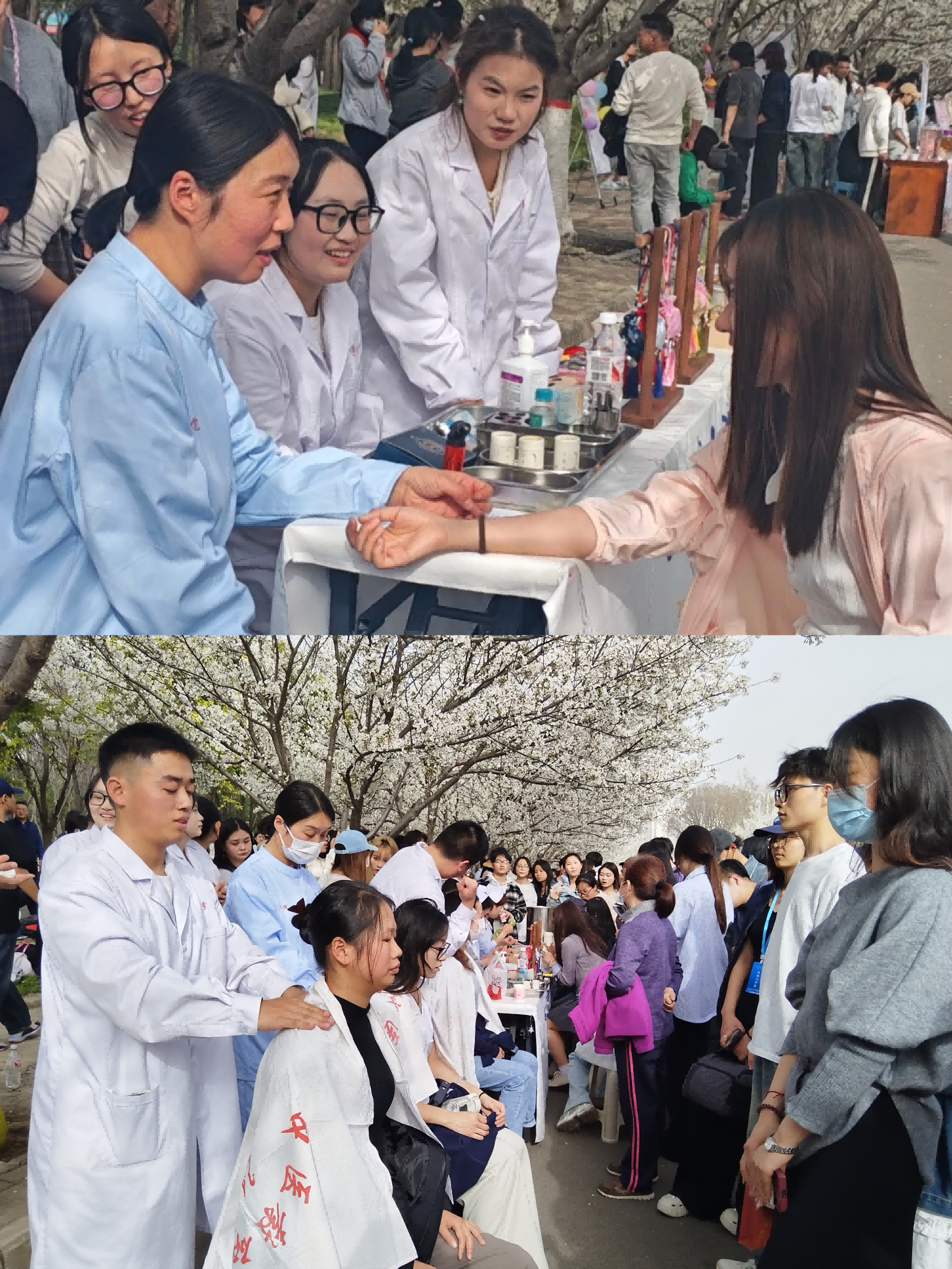 樱花文化节上,我院师生用双手传递温暖,用知识守护健康,以专业与热情书写了“医者仁心”的生动注脚。不仅展现了我院“知行合一”的教学成果,更以樱花为纽带,让传统中医药文化在春风中焕发新生机,为校园增添了一抹独具韵味的“健康粉”。(审核:赵艳丽; 摄影:李璐瑶、张悦)