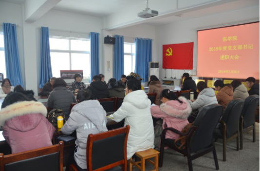 根据《许昌学院2018年度基层党组织书记抓基层党建工作述职评议考核工作方案》的通知要求,1月9日,医学院召开2018年度党支部书记述职大会。医学院全体党委委员、各支部书记、教师党员代表及非党员代表参加了会议。会议由医学院党委书记翟惠婷主持。