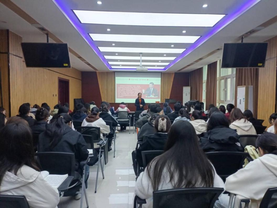 此次理论培训中,党委书记吴飞以“中国共产党的光辉历程”为题,讲述从中国共产党的诞生、新中国成立后的艰难探索之路、从改革开放到迈向新征程等方面进行详细的讲解。勉励广大青年学生,要坚定不移听党话、感党恩、跟党走,争做有理想、敢担当、能吃苦、肯奋斗的新时代好青年,把个人的理想追求融入国家发展大局中、家乡建设中、人民群众需求中。