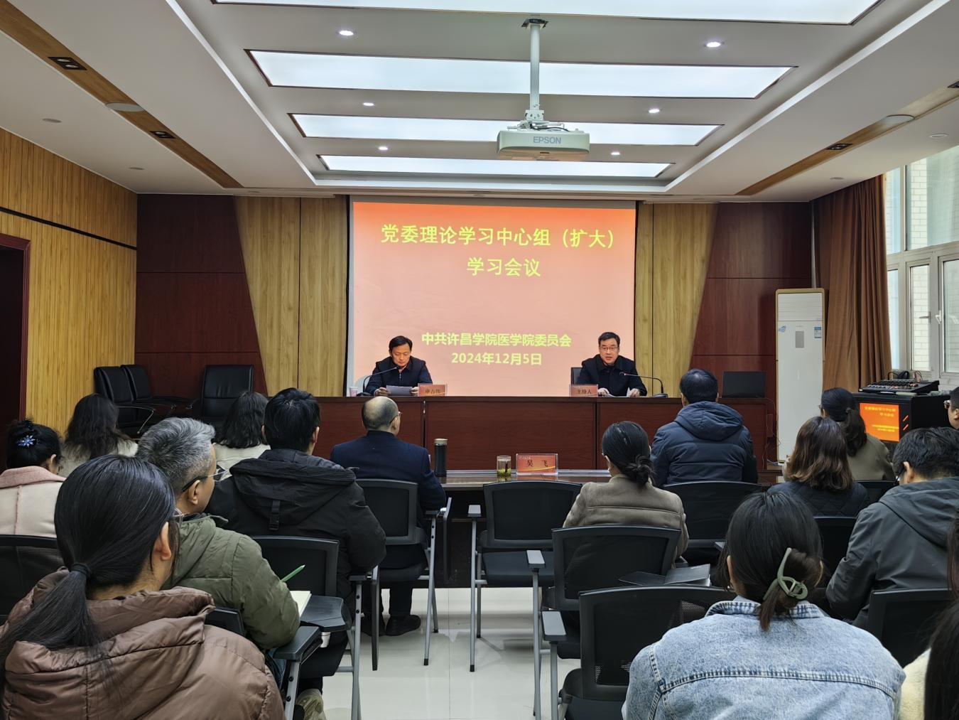 12月5日下午,我院在医学院第一会议室召开党委理论学习中心组学习(扩大)学习会议,会议特邀校纪委书记、监察专员申占伟作党的二十届三中全会精神宣讲报告。院领导班子成员、科级以上干部、师生党员代表、青马班学员代表等参加报告会。报告会由院党委书记吴飞主持。