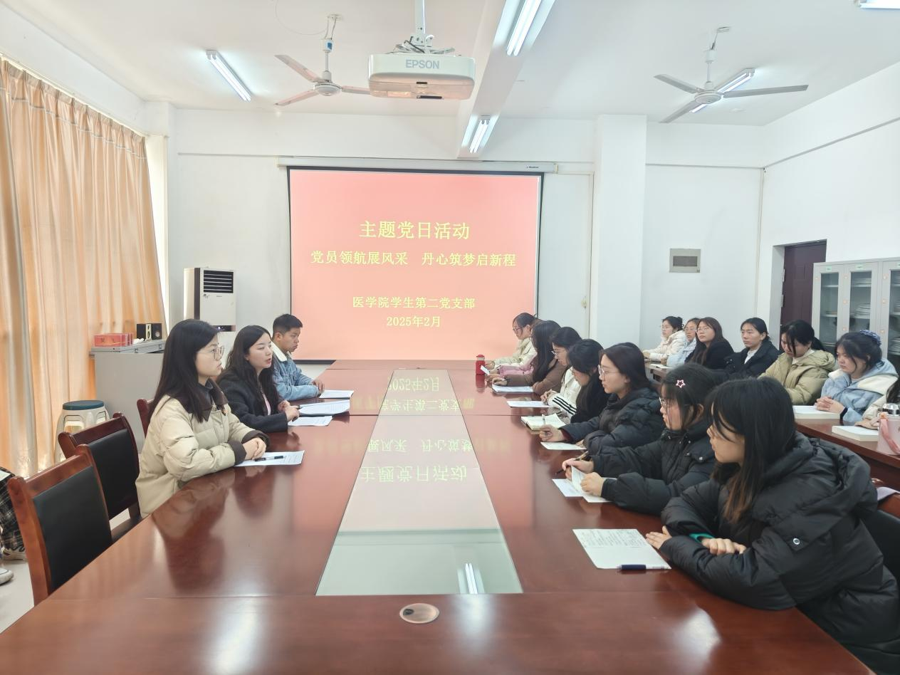 2月21日,医学院学生第二党支部在三楼会议室召开“党员领航展风采,丹心筑梦启新程”主题党日活动,全体党员参加活动。