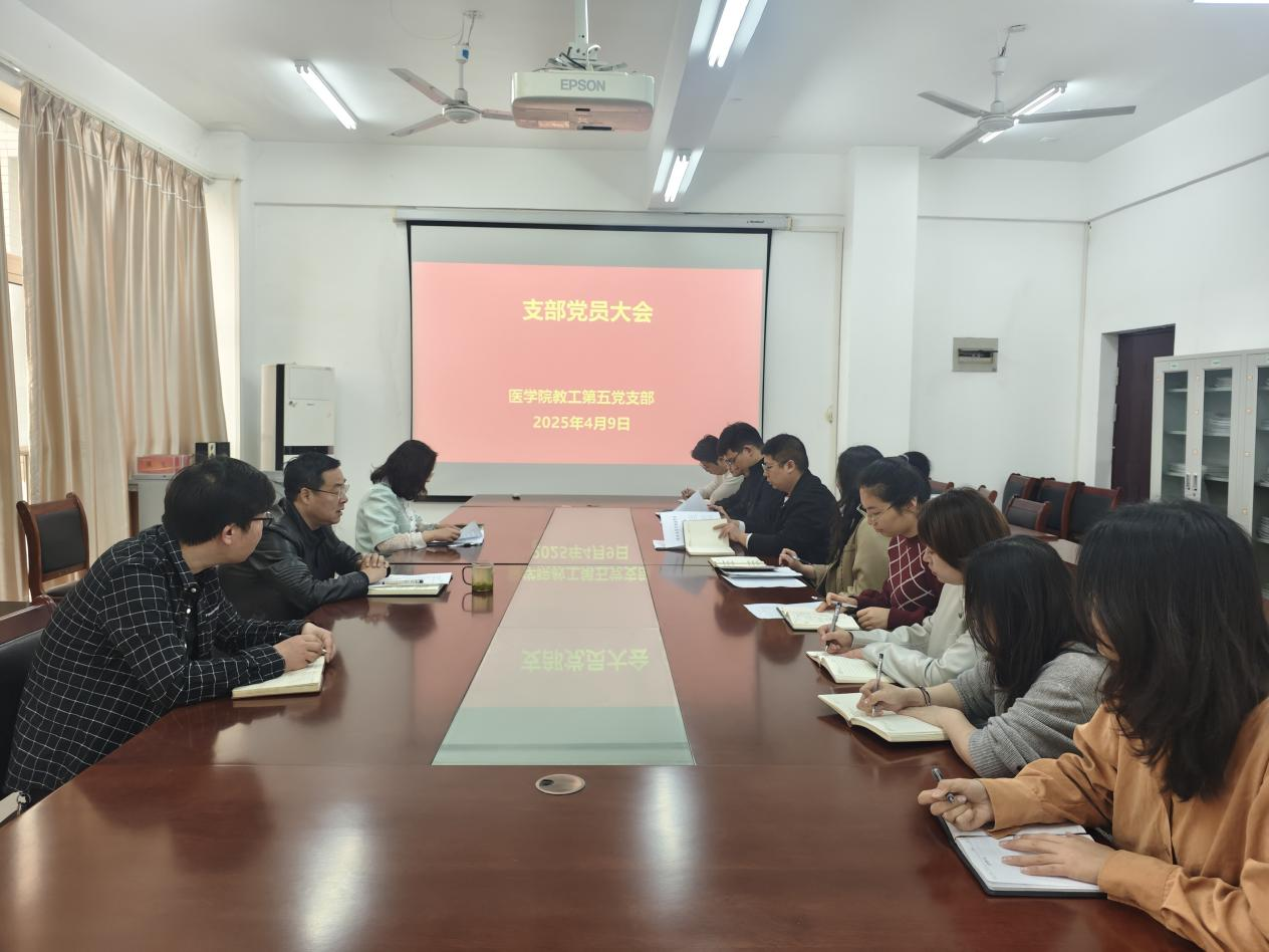 4月9日上午,我院教工第五党支部在医学院三楼会议室开展深入贯彻中央八项规定精神学习教育。支部全体党员和入党积极分子参加活动,学生第一、第二、第三党支部书记列席。会议由院党委副书记、教工第五党支部书记赵艳丽主持。