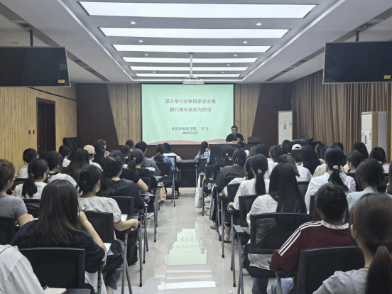 为深入贯彻落实总体国家安全观,加强全民国家安全教育、强化青年责任担当。5月13日晚,医学院党委书记吴飞在医学院二楼会议室为学生讲授《深入学习总体国家安全观,践行青年责任与担当》专题党课。2025年上半年确定的党员发展对象及入党积极分子参加本次课程。