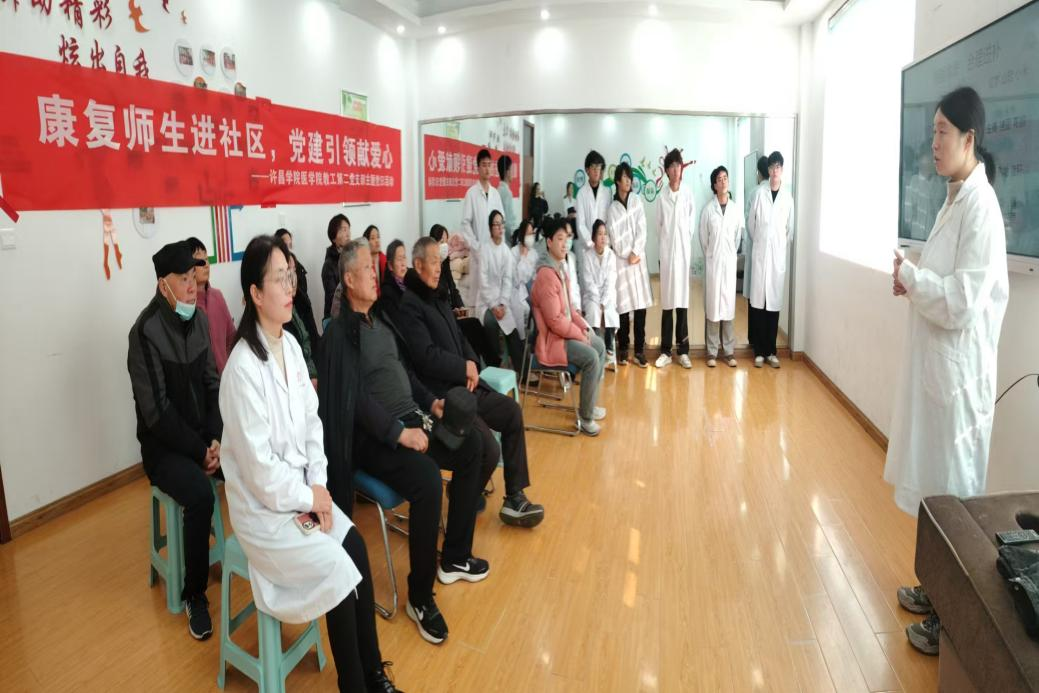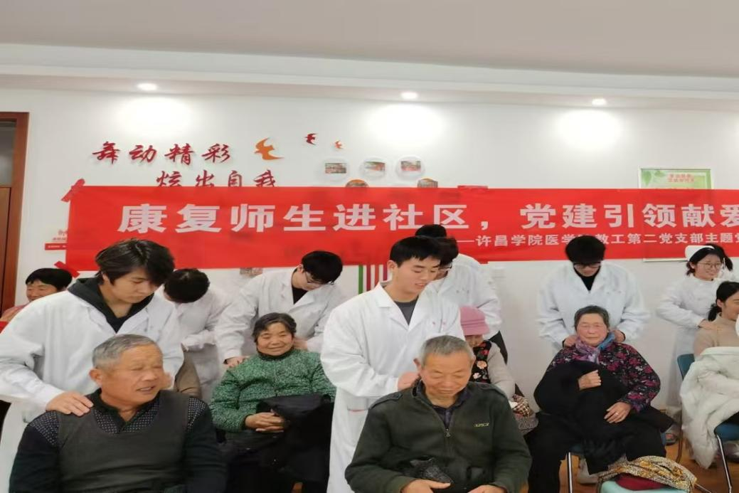 12月20日下午,我院康复治疗技术教研室所在的医学院教工第二支部部分党员教师带领学生走进许昌市建安区魏风社区,开展了“康复师生进社区,党建引领献爱心” 主题党日活动。康复治疗技术教研室全体教师及2023级康复治疗技术专业部分学生参加本次活动。