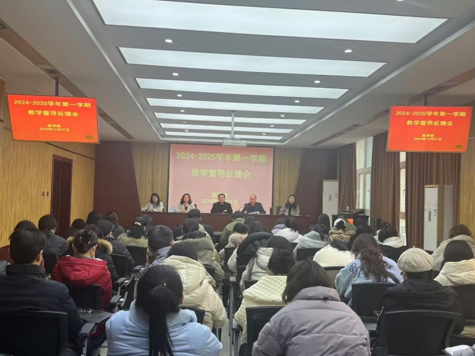 12月31日下午,我院在教学楼B楼二楼会议室召开2024-2025学年第一学期教学督导反馈会,医学院党委书记吴飞,党委副书记赵艳丽,副院长陈丽平、刘艳艳,医学院教学督导组成员及全体教职工参加会议,会议由医学院院长李学峰主持。