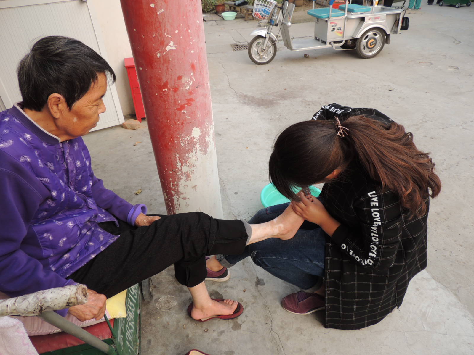 志愿者们到达后与老人们亲切地聊天、拉家常,听老人们讲几十年来的生活感受,帮老人们修剪指甲,并扶着行动不便的老人在院子里锻炼身体。整个敬老院充满了融融的暖意,一派老少同乐的和谐景象。