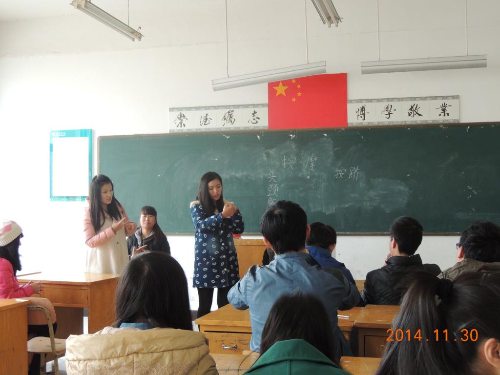 课程内容紧扣主题、层次分明、具有特色,活动主要是进行“按摩”教学,医学院的同学对按摩的穴位及手法进行详细的讲解及示范,并针对老年人常见疾病的发生原因及生理机制进行详细的描述。活动接近尾声时,医学院的同学们针对常见疾病的预防保健进行了详细的讲解,使美术学院编外雷锋连的同学们对医疗保健有了更深层的了解。