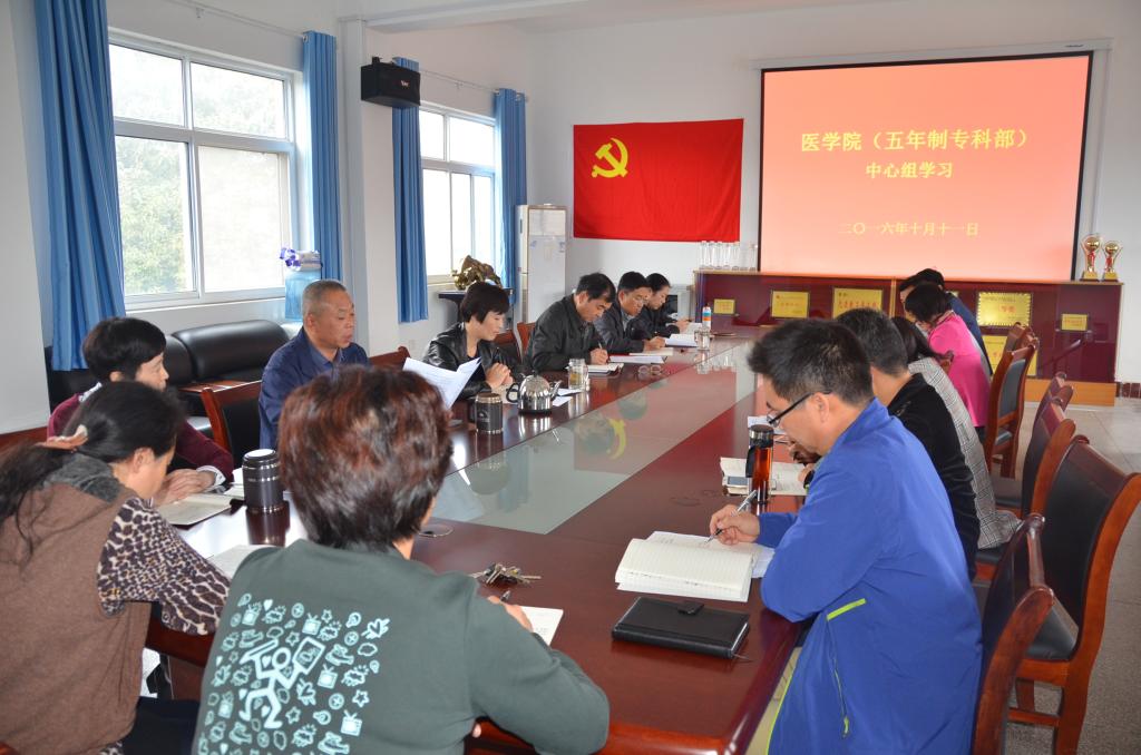 10月11日,医学院(五年制专科部)党委在三楼会议室组织了“两学一做”学习教育第二次专题学习。全体党委委员及各支部书记参加了会议。会议由党委书记翟惠婷主持。