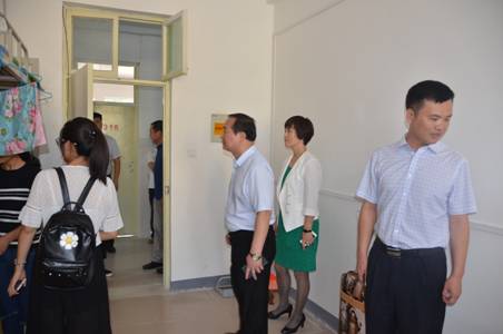 随后郭院长一行又来到5号学生公寓,探望了住在这里的新生,询问了新生到校后的感受以及生活安排情况,并勉励同学们要尽快适应新环境,在大学学习中取得更好的成绩。