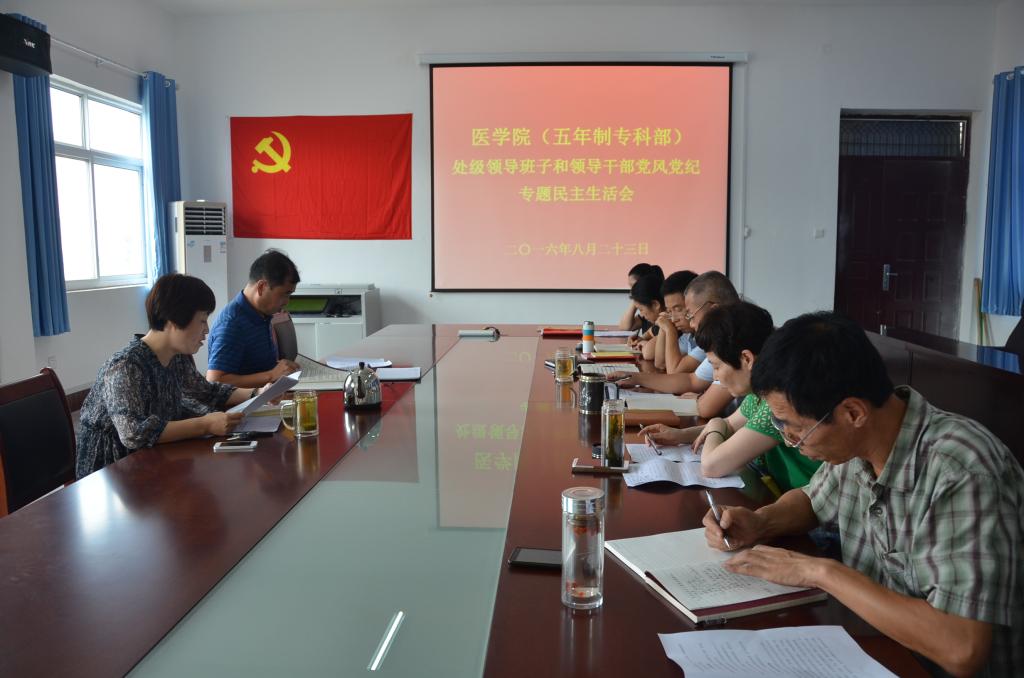 8月23日下午,医学院(五年制专科部)处级领导班子和领导干部党风党纪专题民主生活会在三楼会议室召开。处级以上领导干部参加了会议。会议由党委书记翟惠婷主持。
