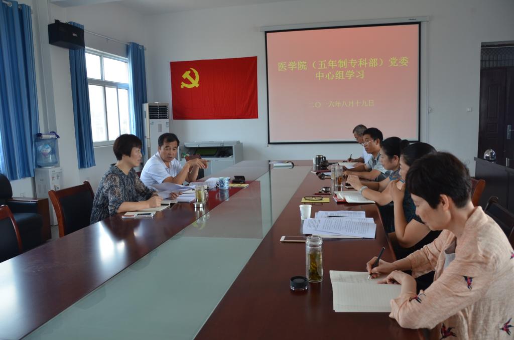 8月19日上午,医学院(五年制专科部)党委在三楼会议室组织了“两学一做”学习教育党风党纪专题学习。全体党委委员参加了会议。会议由党委书记翟惠婷主持。