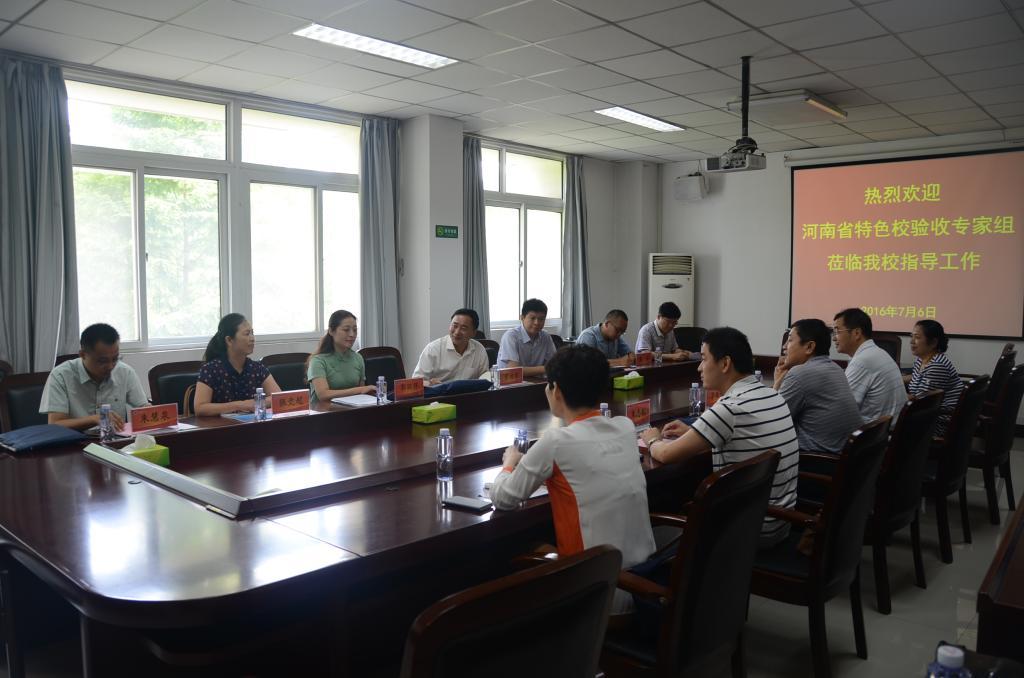 许昌卫校校长艾旭光介绍了特色校基本情况及省财政资金使用情况。专家组成员实地查看了图书馆、形态学实验楼、机能学实验楼等教学实验场所。随后,专家组认真察看审验了我校相关评估材料。