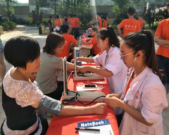 6月28日,医学院爱心医疗服务基层社会实践A队赴禹州市苌庄乡毛栗沟村开展为期3天的送医送药、常规体检、防病知识宣传活动。
