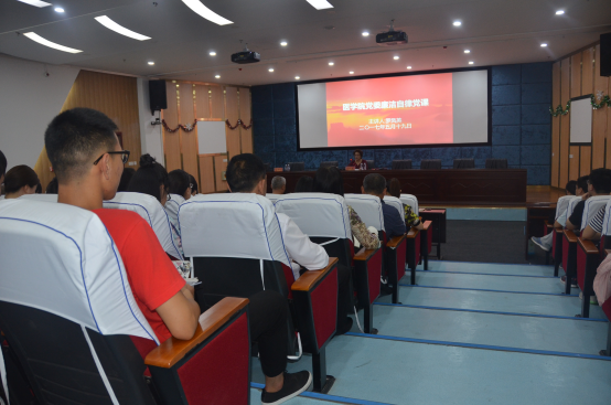 5月19日下午,校纪委书记罗凤英应邀到我院讲廉政党课。医学院全体教职员工、团学干部、党员发展对象、辅导员助理及部分学生代表180余人聆听了党课。党课由医学院党委书记翟惠婷主持。