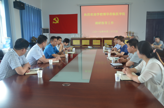 6月23日上午,校党委副书记孙海、宣传部部长冯晓民、学生工作部部长张鹏辉等一行五人莅临我院调研指导工作。医学院党委书记翟惠婷、副书记康伟、李志刚等陪同调研。