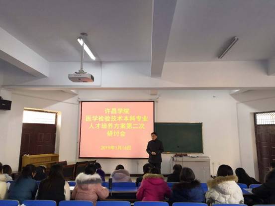 1月16日上午,在医学院办公楼202室,召开了医学检验技术本科专业人才培养方案研讨会。许昌市中心医院检验科主任郑文亮、病理科主任张发顺、副主任技师任丽娟、许昌人民医院检验科主任周志敏和医学院院长艾旭光、副院长张彩霞等相关专家及医学院医学检验技术专业的全体任教教师参加了会议。