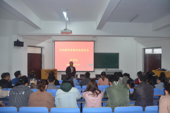 培训会上,院党委书记康伟首先介绍了本科教学工作审核评估的重要意义,要求大家要提高认识,提高政治站位,人人参与其中,做好迎评工作。接着,吴院长从医学院的角度解析了审核评估的重点要素,详细解读了医学院的办学定位和人才培养方案以及成果导向教育(OBE)理念,并给大家提出了如何区分专科教学和本科教学的问题。他要求全院老师以认真积极和学习的心态对待本次审核评估工作,同时希望大家在今后的实际工作中不断学习思考,不断提高质量效果,从而提升人才培养质量。