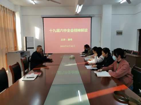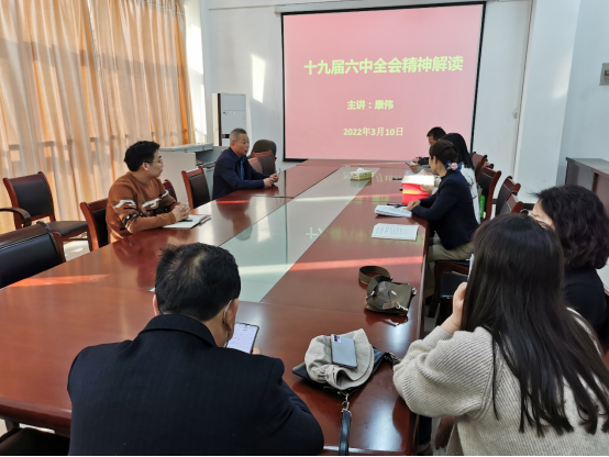 3月10日,医学院党委书记康伟在党建活动室讲党课,主题为《十九届六中全会精神解读》,医学院教工第一党支部全体同志参加,支部书记王占欣主持。