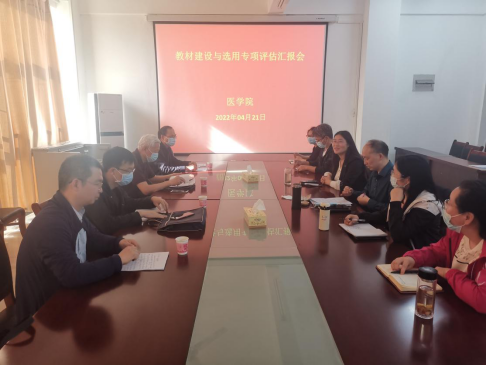 按照《关于开展许昌学院教材建设与选用专项评估工作的通知》要求,前期我院认真开展自评工作,并按时提交自评报告和相关材料。4月21日下午,由教务处质量管理科郑恩伟老师带领的专家组一行四人来到医学院进行现场督导检查。我院组织召开了教材建设与选用专项评估汇报会,院长李学峰、副院长陈丽平及系室主任参加汇报会,会议由陈丽平副院长主持。