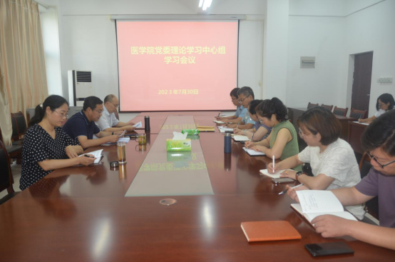 7月30日上午,在医学院三楼会议室,我院组织召开党委理论学习中心组学习会议,医学院领导班子成员、科级以上干部、党支部书记参会,会议由党委书记吴飞主持。