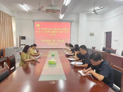 9月14日下午,教工第一党支部全体党员在医学院办公楼三楼会议室,开展“学习贯彻习近平新时代中国特色社会主义思想主题教育专题”组织生活会。