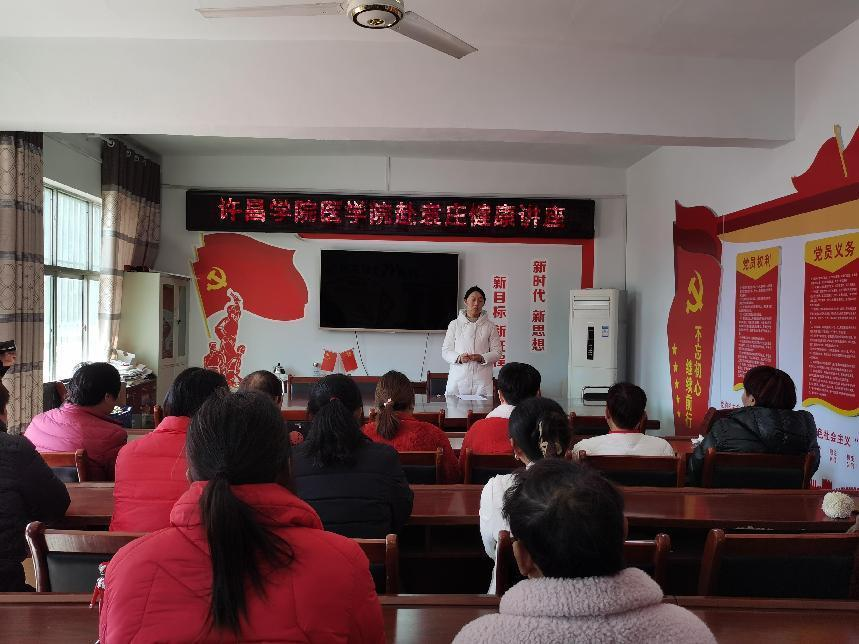 为庆祝一年一度的“三八”妇女节,也为了提高居民的健康意识,3月7日下午,我院受邀为我校定点帮扶单位建安区袁庄村的妇女进行健康知识讲座。为此,医学院分工会主席吴飞安排了我院中医教师丁琳为村里的妇女同志举行一场关于春季养生的知识讲座。