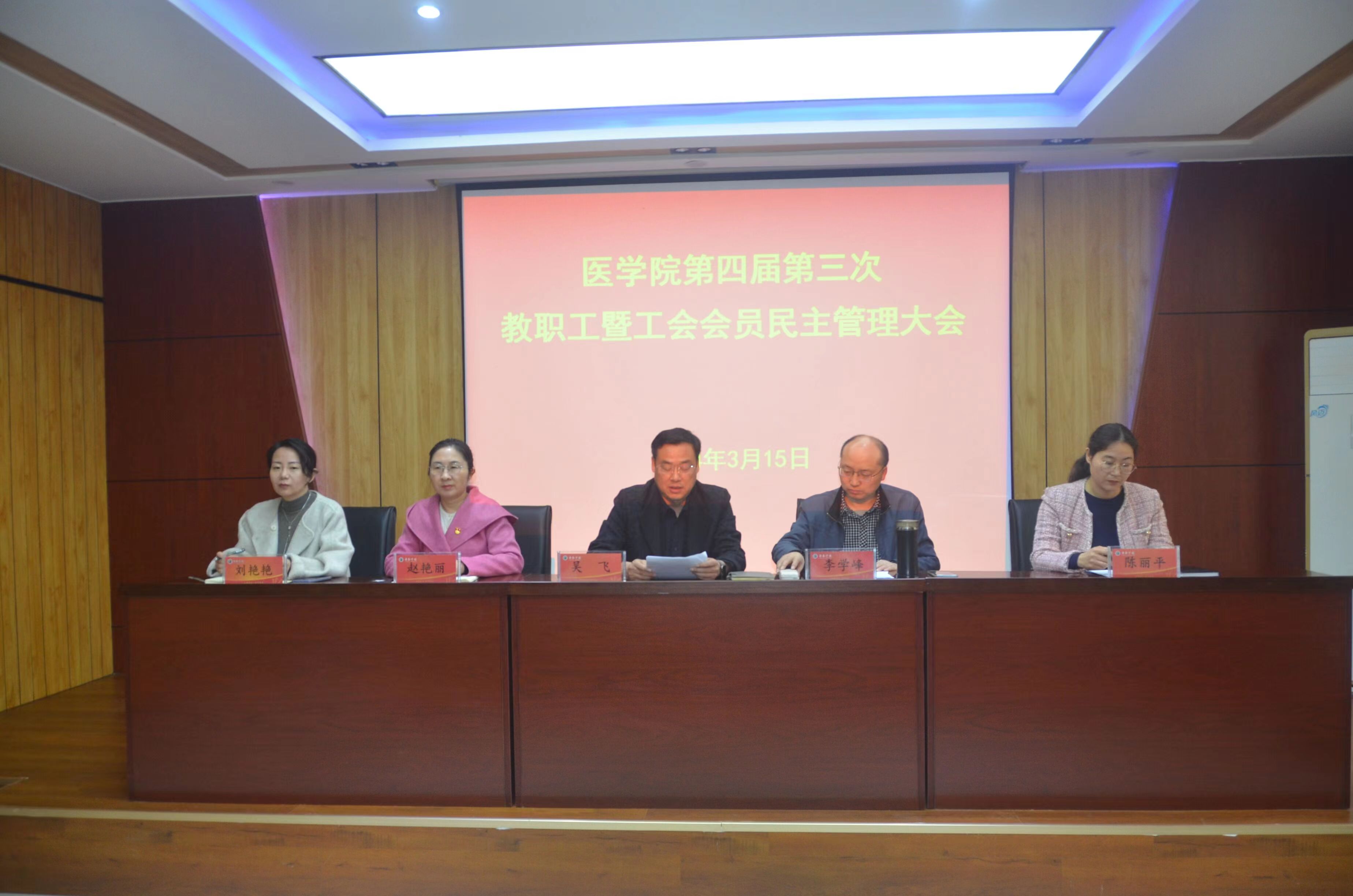 3月15日下午,我院在医学院B楼二楼会议室召开医学院第四届第三次教职工暨工会会员民主管理大会。院领导班子和全体教职工参加了本次会议,会议由院党委书记、院分工会主席吴飞主持。