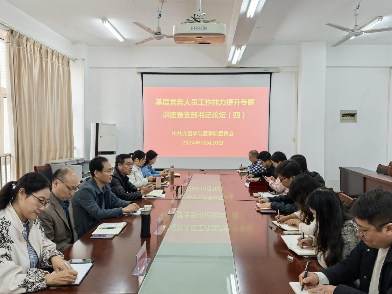 10月30日上午,我院在B楼三楼会议室召开2024年第四期基层党务人员工作能力提升专题讲座暨支部书记论坛。院党委书记吴飞、院长李学峰、党委副书记赵艳丽、副院长陈丽平、副院长刘艳艳、组织员、教工及学生党支部委员、辅导员参加会议。会议由吴飞主持。
