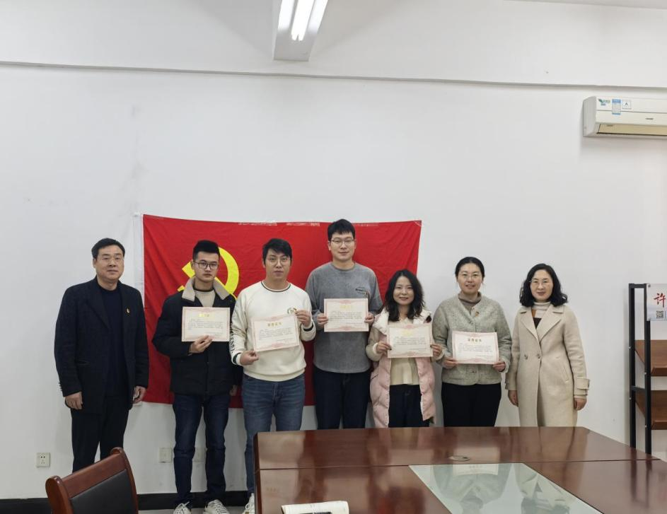 吴飞和赵艳丽代表党支部为5位党员同志赠送“政治生日贺卡”,希望党员同志们始终保持对党忠诚的政治品格,以更高的标准要求自己,为党的事业不懈奋斗!