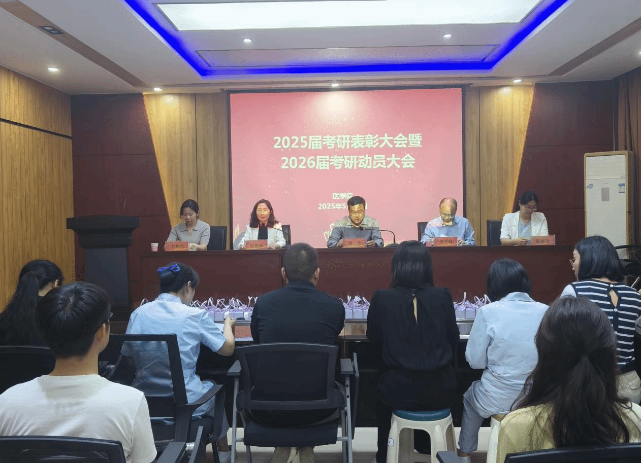 5月15日,我院在兴华路校区B楼第一会议室召开2025届考研表彰大会暨2026届考研动员大会。院党委书记吴飞、院长李学峰、党委副书记赵艳丽、副院长陈丽平、副院长刘艳艳、医学技术系主任张建新、护理学系副主任胡焕丽、团委书记姚婷玉、学生工作办公室副主任李璐瑶、教师及学生代表参加会议。会议由赵艳丽主持。