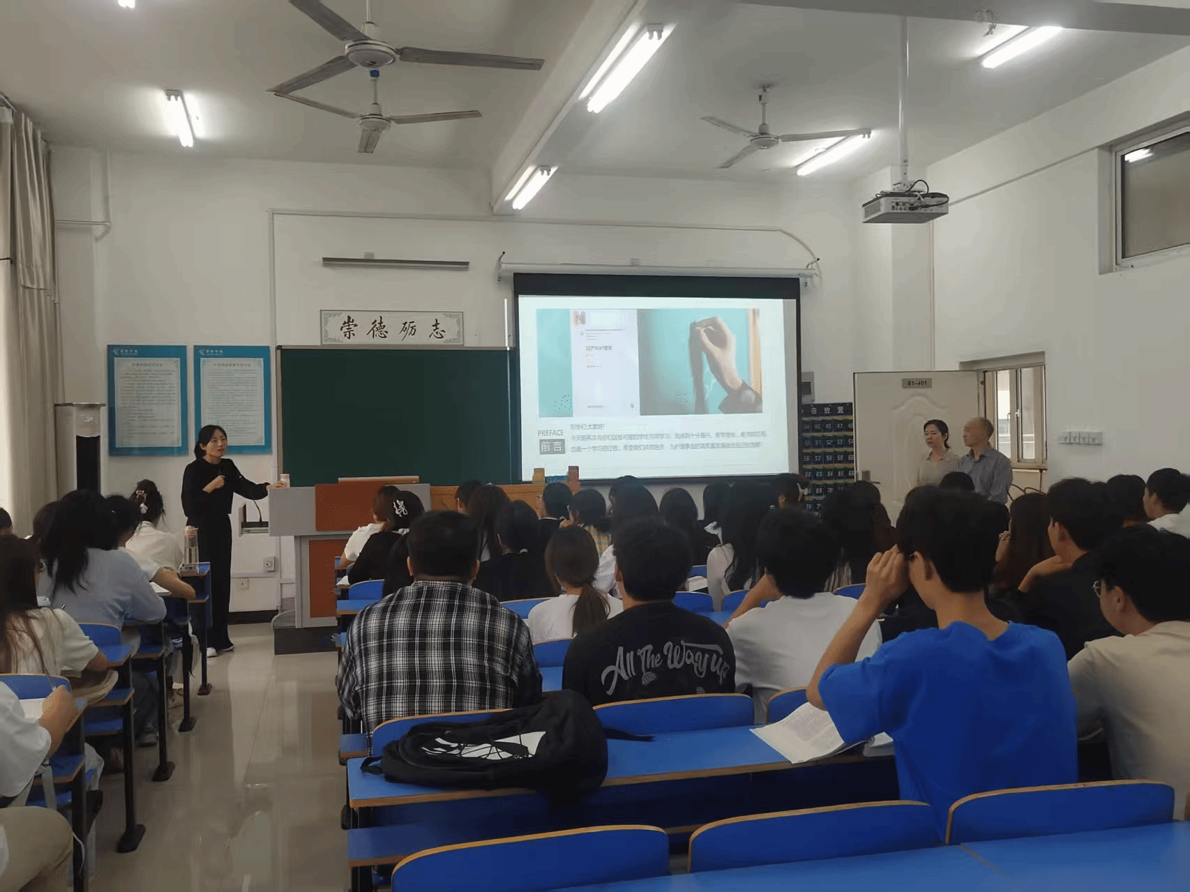 院领导重点检查了教师教学状态、学生出勤状况、课堂氛围及教学设备运行等方面的情况。通过检查发现,我院师生在新学期开学前准备充分,教学工作有序开展。教师及学生均提前进教室,课堂氛围良好,前排落座率、手机入袋率及课堂抬头率达均较高。