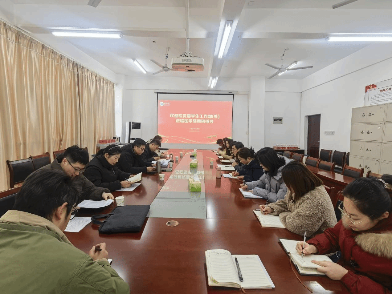 1月22日上午,许昌学院学生工作部(处)考核调研组一行5人在组长李鹏的带领下莅临医学院,开展2025年度学生工作考核与调研。医学院党委书记吴飞、党委副书记赵艳丽及全体辅导员参会。