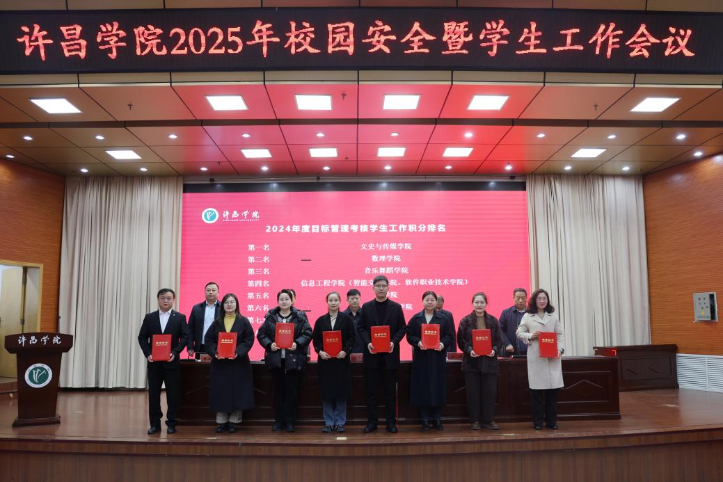 2025年3月5日下午,许昌学院2025年校园安全暨学生工作会议在图书馆二楼学术报告厅召开。会议全面总结了过去一年校园安全与学生工作的成果,并对2024年度学生工作目标管理考核先进单位和先进个人予以表彰。我院荣获许昌学院2024年度“学生工作目标管理考核先进单位”称号。同时,辅导员兼征兵专干涂乾坤老师获评2024年度学生征兵工作“先进个人”。
