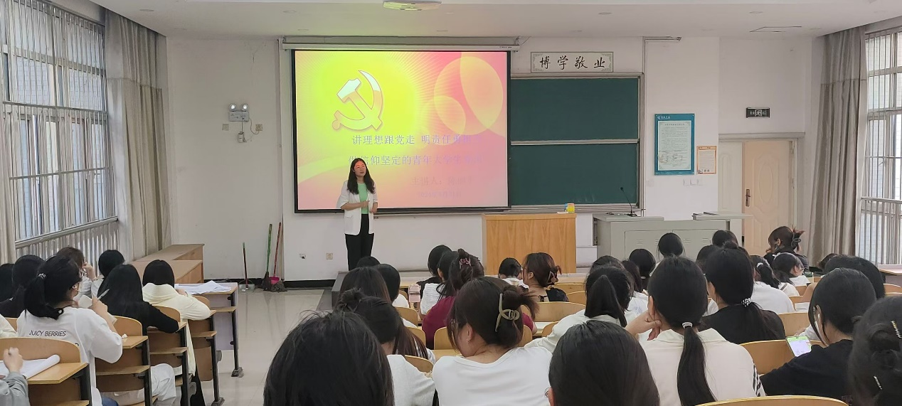 5月21日晚7点,医学院副院长陈丽平在兴华路校区A3-105教室以“讲理想跟党走、明责任勇担当,做信仰坚定的青年大学生党员”为题为入党积极分子上党课。