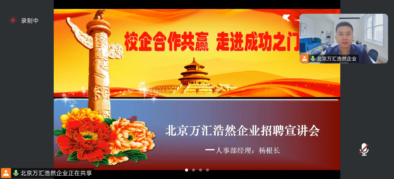 4月17日19点20分,我院顺利举办北京万汇浩然企业线上宣讲会。企业代表全方位解读了公司业务范围、所处行业发展前景,展示了丰富的岗位信息,涵盖技术研发、市场营销、运营管理等多个领域,为不同专业的学生提供了广阔的选择空间。在答疑环节,学生们踊跃提问,与企业代表进行了良好的沟通。