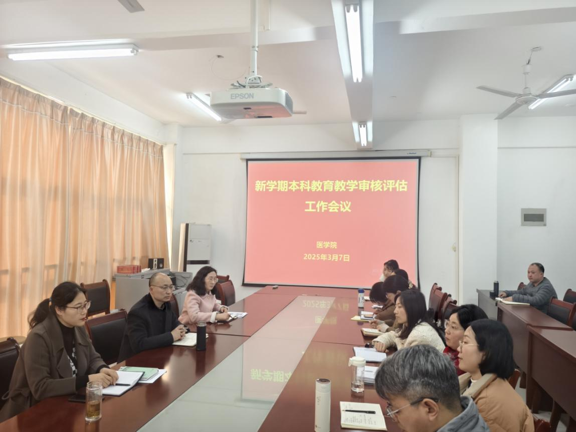 3月7日下午,医学院在B1三楼会议室召开了新学期本科教育教学审核评估工作会议,医学院领导,系、教研室主任及各部门负责人参加此次会议,会议由医学院院长李学峰主持。